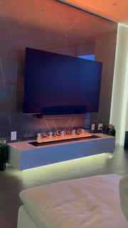 Mercury 40" is ideal for living rooms, hotels, lobbies, and luxury spaces. Realistic flames, whisper-quiet performance, and elegant style—powered purely by water.