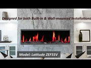Chimenea eléctrica Litedeer Homes ZEF58VC Latitude II de 58 pulgadas, de pared, con aplicación y wifi, estilo multillama, 5 sonidos crepitantes de llama ajustables , sonido de hielo picado y control remoto, color negro.