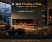 Chimenea inteligente Warmcastle de 60 pulgadas de ancho y 3 lados, eléctrica, que se puede empotrar fácilmente en la pared o en un gabinete con TV encima para sala de estar, sala familiar, sala de entretenimiento o cualquier espacio.