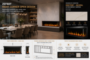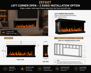 Chimenea eléctrica inteligente Warmcastle de 3 lados y 60 pulgadas (modelo 2025) con aplicación wifi y cristales tipo diamante (modelo: ZEF60T)