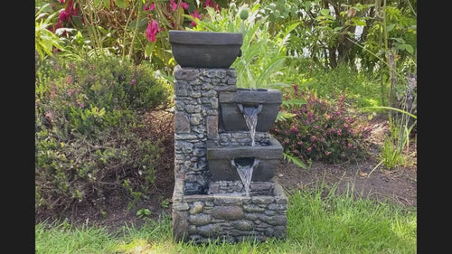 Outdoor Garden Decoration Fountain Waterfall: Outdoor garden waterfall fountain with built-in LED lights and auto-pump. Enhance your outdoor living space with this decorative fountain, perfect for garden ambiance. Long-lasting resin fountain is a great Christmas decoration for garden or as a bird bath fountain for summer. Adjustable waterfall speed and soothing sound for a serene atmosphere Ideal for garden, courtyard, or deck décor.