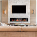 This built-in linear electric fireplace features GT-Xview HD LED multi-flame technology, realistic crackling fire sounds, and new breathing driftwood logs that create a gentle, rhythmic glow — mimicking the pulse of real burning wood. With a 1-inch slim trim frame and ultra-slim 8-inch depth, it integrates seamlessly into living rooms, dining areas, bedrooms, hotels, and luxury condo projects.